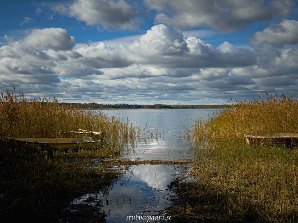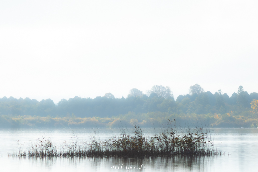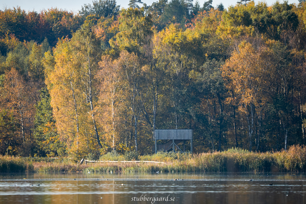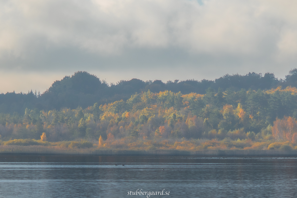 Det blev några underbara höstdagar, så här i mitten på oktober. Fint ljus, behagligt varmt och vindstilla. Det har lugnat sig rejält på fågelfronten. Gäss, änder, svanar, skarvar och svanar på sjöns öppna vatten.