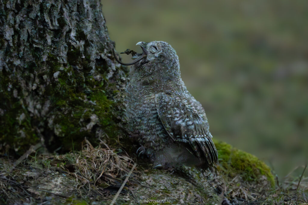 Tidig morgon i Botan. Letade kattugglor och så småningom hittade jag denna filur. Den var på marken, dragandes på en död råtta. I det svaga gryningsljuset kunde jag följa ungens möda att svälja råttan. Men den lyckades till slut.